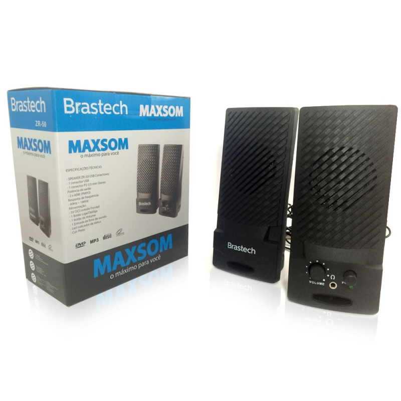 Caixa De Som Brastech Maxsom Usb Zr-50. Cor: preto